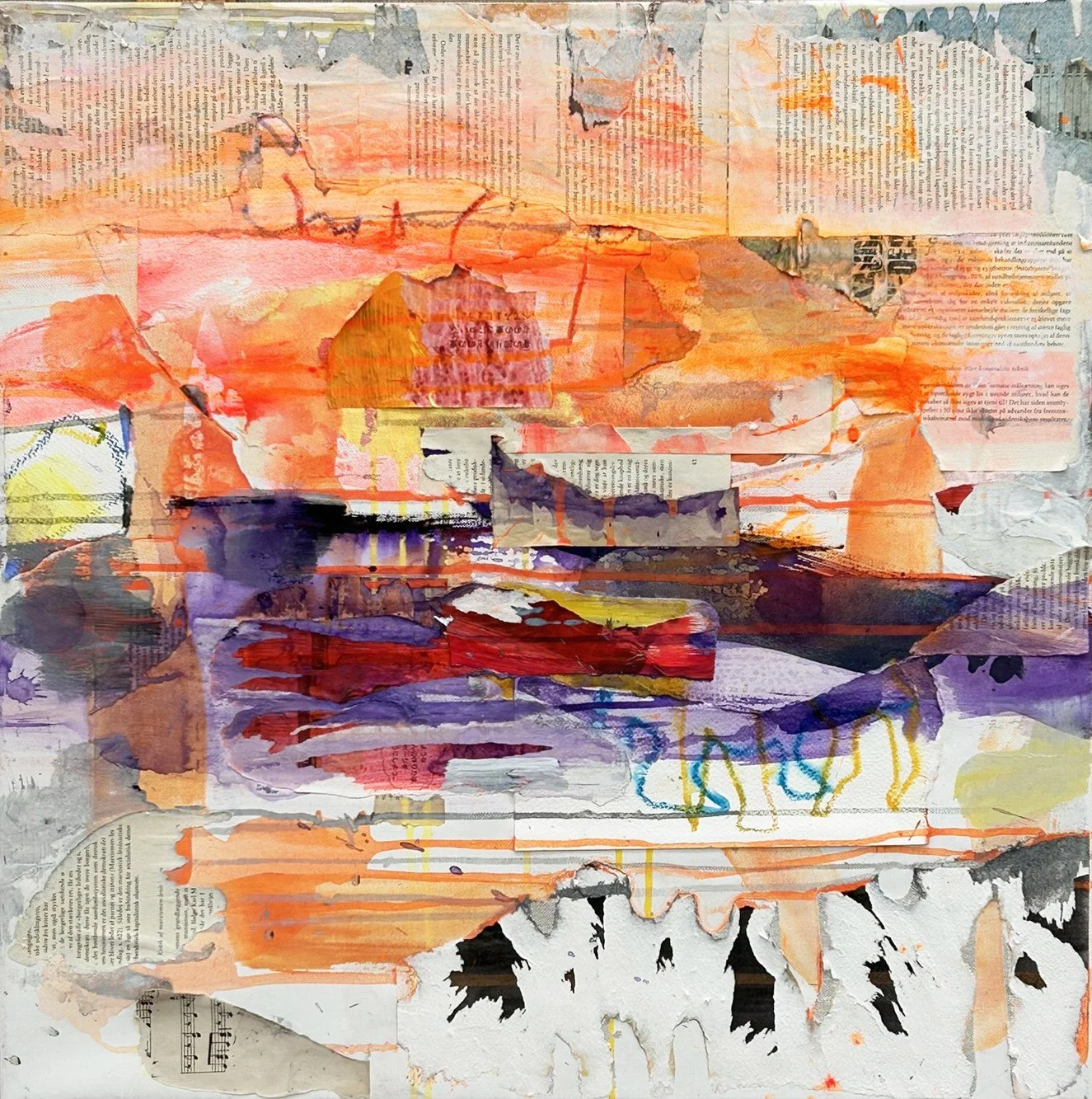 Uden titel 2025 acryl og collage på lærred 60 x 60 cm