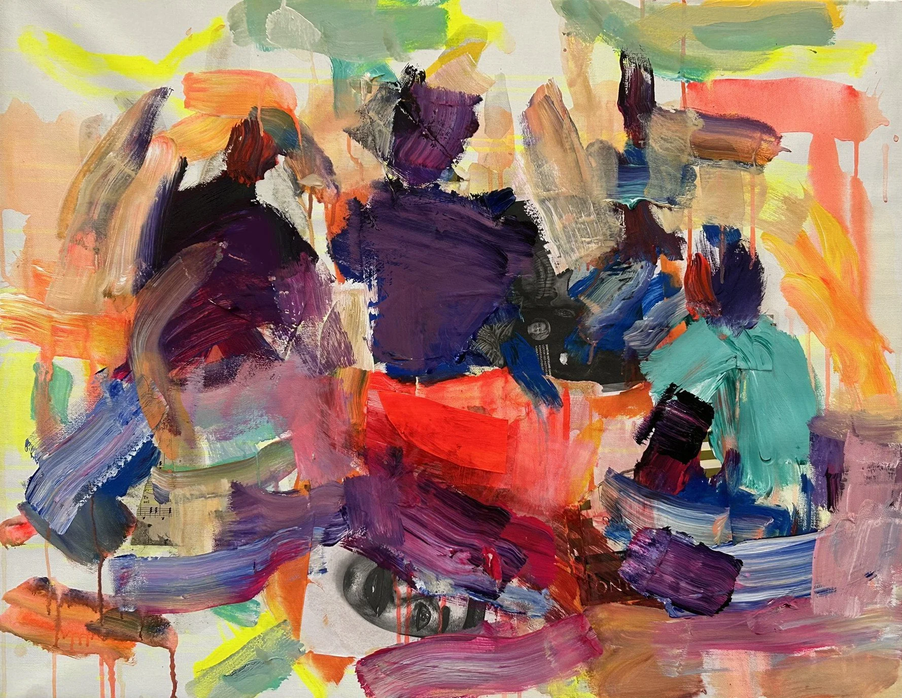 "Cellospiller" 2022 acryl og collage på lærred 100 x 80 cm