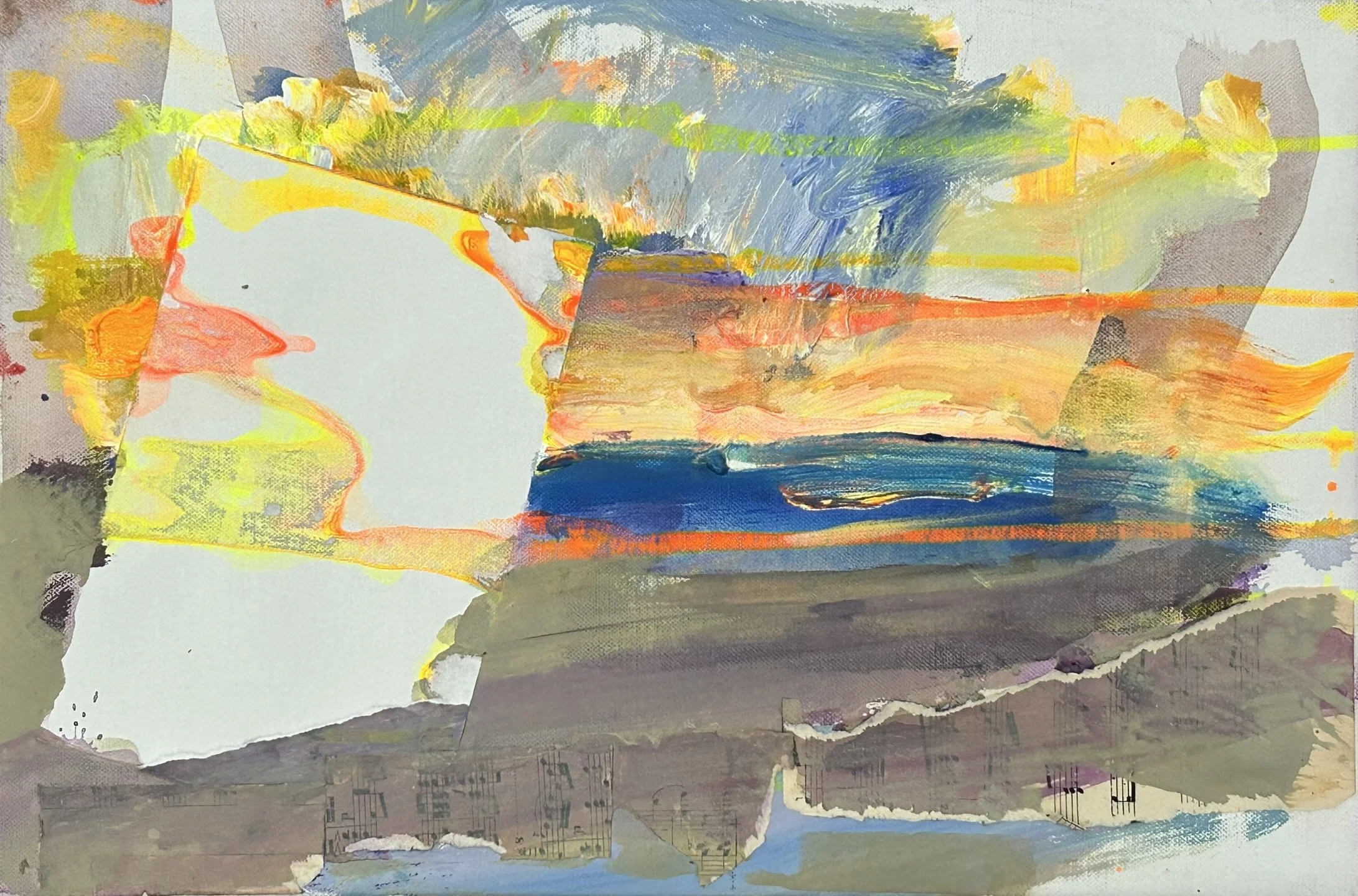 Skrøbeligt landskab 2025 acryl og collage på lærred